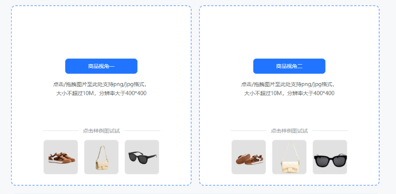 1、准备一张背景整洁、画面平整度高并且整体亮度均匀一致的鞋子产品图为素材,之后将它上传到易可图中的 AI万能穿戴内。