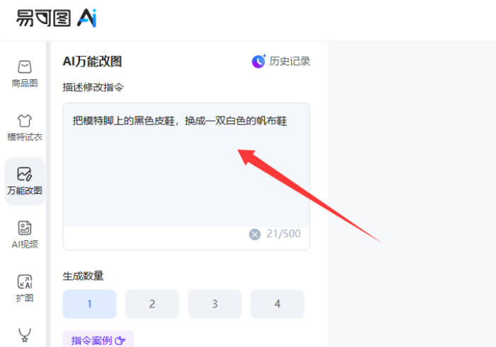 要想为模特换上一双新鞋,可以选择 AI万能穿戴或者 AI万能改图这两种方式。两个功能都可以达到效果: