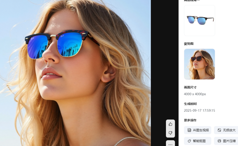 AI模特试衣(服装品类):这是针对服装卖家的功能。你只需上传一张服装的平铺图,就可以在平台提供的海量、多样化的AI模特库中,选择不同肤色、国籍、风格和场景的模特,AI便能一键将这件衣服穿在模特身上,效果非常逼真,褶皱和光影都处理得非常自然。