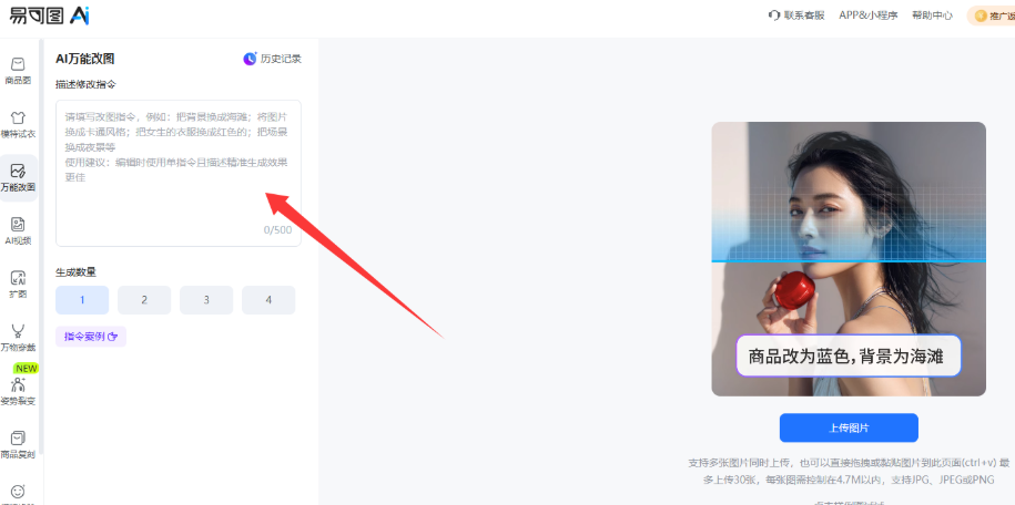 如果不想学习PS的话,这边推荐大家使用易可图的AI万能改图功能,来修改物品的颜色。