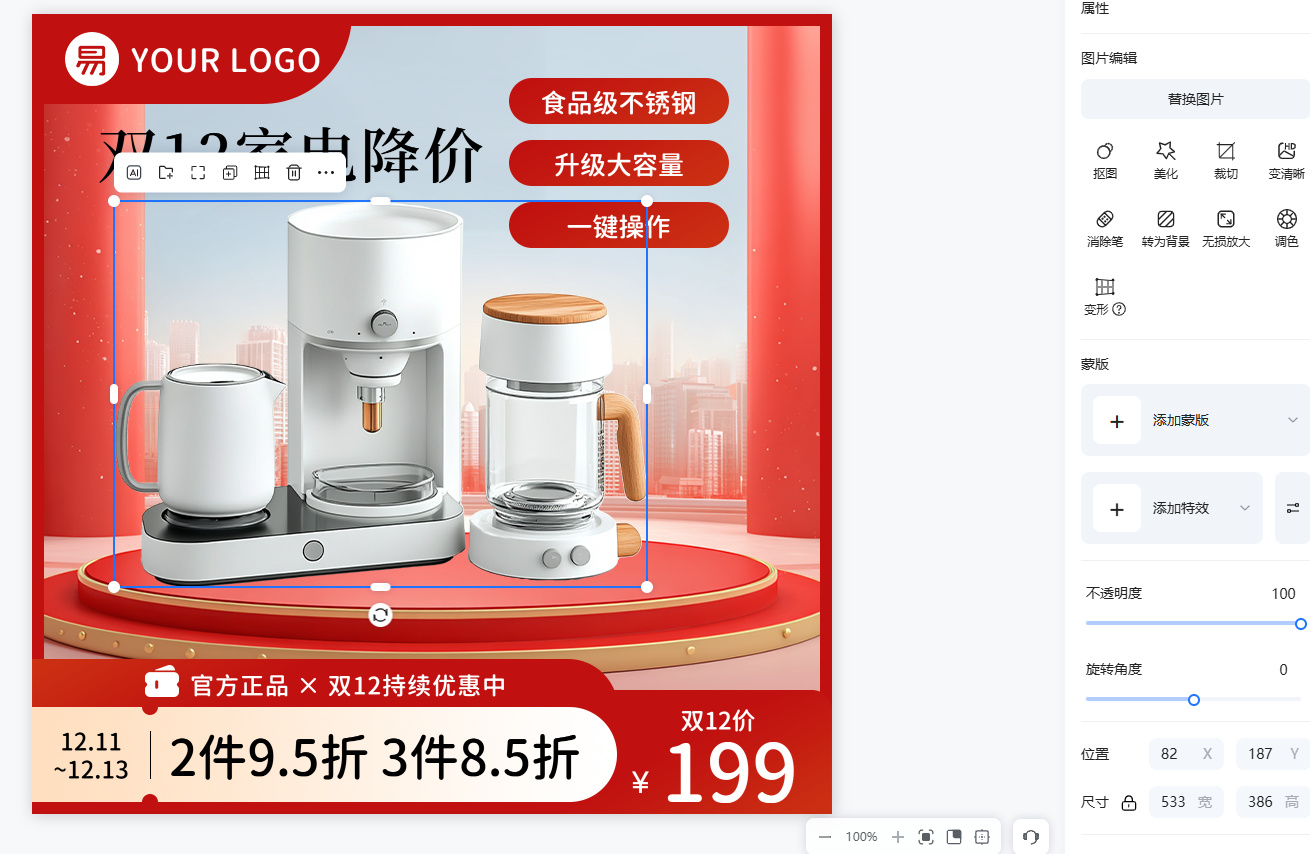 易可图是一款汇集了大量设计模板及AI工具的在线设计平台,针对电商行业地应用做了大量的功能来支持,而易可图的模板中心就可以用来做主图水印。