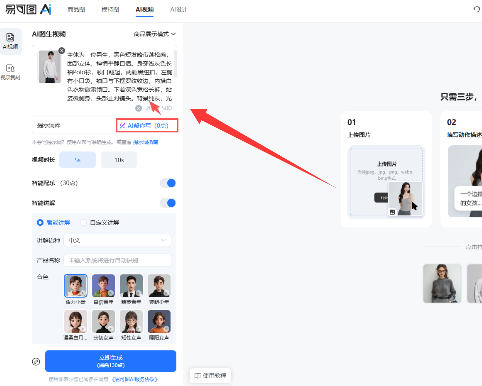 一、易可图:商品图直接生成讲解视频