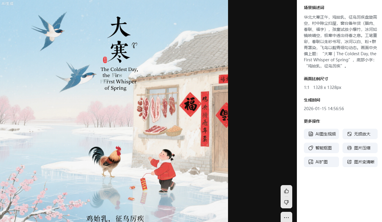 A3:可以根据需求重新调整描述再次生成,也可以结合平台其他图片处理功能进行二次编辑,从而逐步优化最终视觉效果。