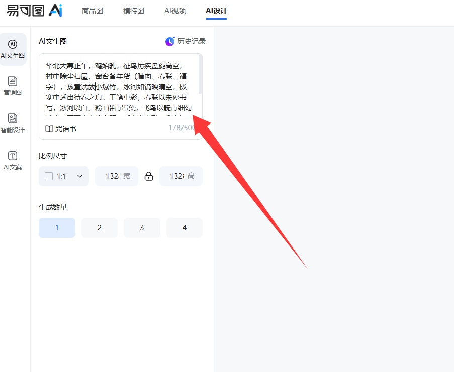 易可图的AI文生图功能支持通过输入文字描述直接生成图片素材,可用于logo、海报、绘画、商品图等内容创作。对于需要快速产出视觉素材的用户来说,操作流程较为直观,适合日常高频使用。