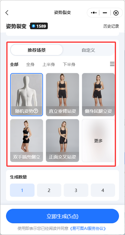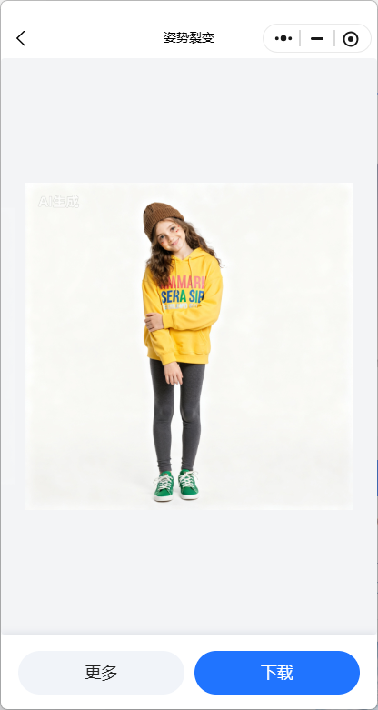 Step4:选好姿势后,点击【立即生成】,稍等片刻,你的模特图就换了一个姿势啦!