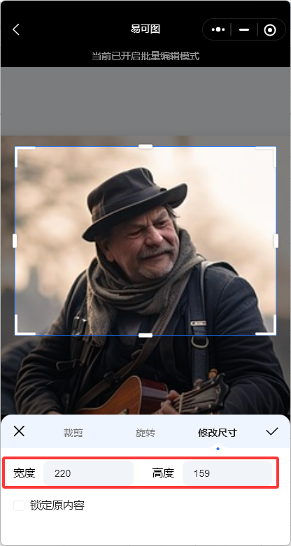 Step6:若你想保留原图的所有内容的话,可以勾选【锁定原内容】,但需要注意这样很可能会造成原图变形。