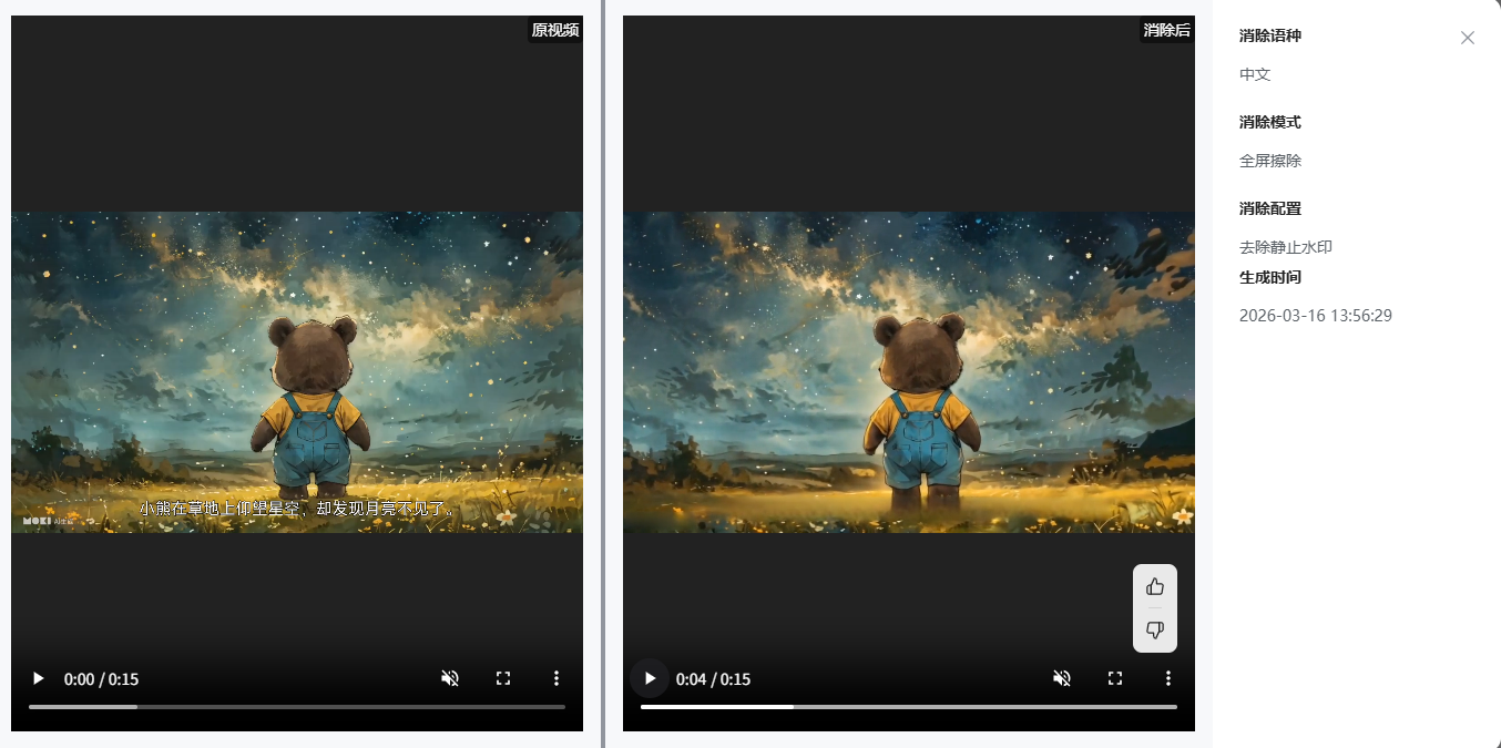 都不勾选:两个选项都不勾选的情况下,功能会自动识别去除视频中所有的水印、文字等
